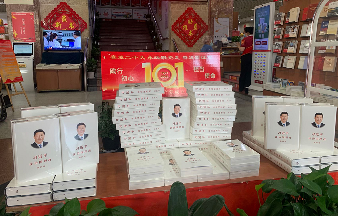 以下为《习近平谈治国理政》第四卷中英文版图书在四川、云南、贵州、西藏、陕西、甘肃、青海、宁夏、新疆主要书店上架销售及读者阅读的场面。